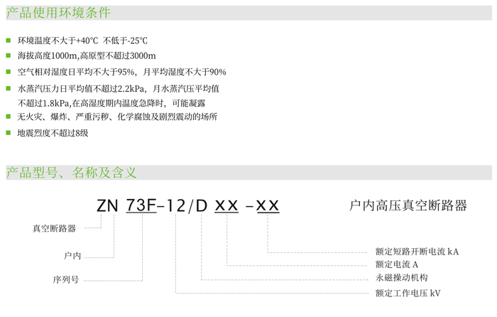 ZN73F-12型真空斷路器適用于以空氣為絕緣的戶內(nèi)式開(kāi)關(guān)系統(tǒng)中。在正常的使用條件及斷路器的技術(shù)參數(shù)范圍內(nèi),ZN73F-12型真空斷